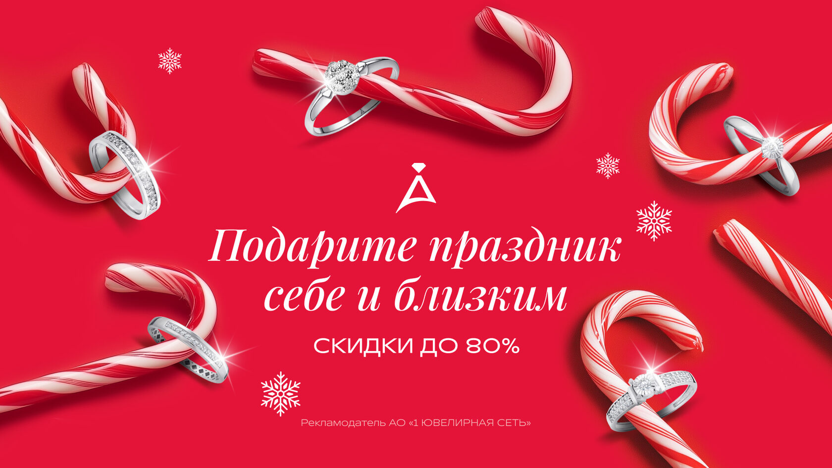 До 11.01.26 при совершении покупки в розничном магазине ADAMAS Вам предоставляется дополнительная скидка до 80% на украшения из выделенного ассортимента* ювелирных украшений. Скидка не суммируется с бонусами программы лояльности «Карта золотых желаний». Скидка не суммируется с другими акциями и промокодами.